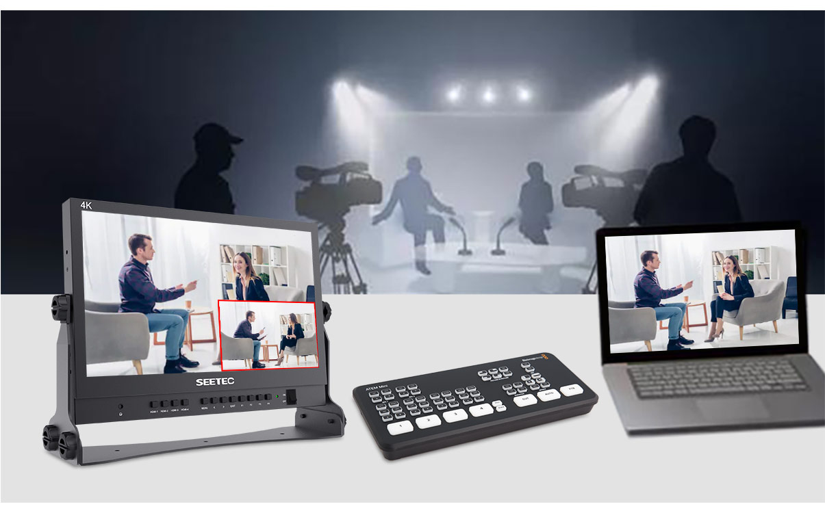 ATEM156 is ideal for small streaming programs because it is equipped with a 15.6-inch large screen and has 4 HDMI inputs, you can connect 4 cameras for wide, medium and close up shots.