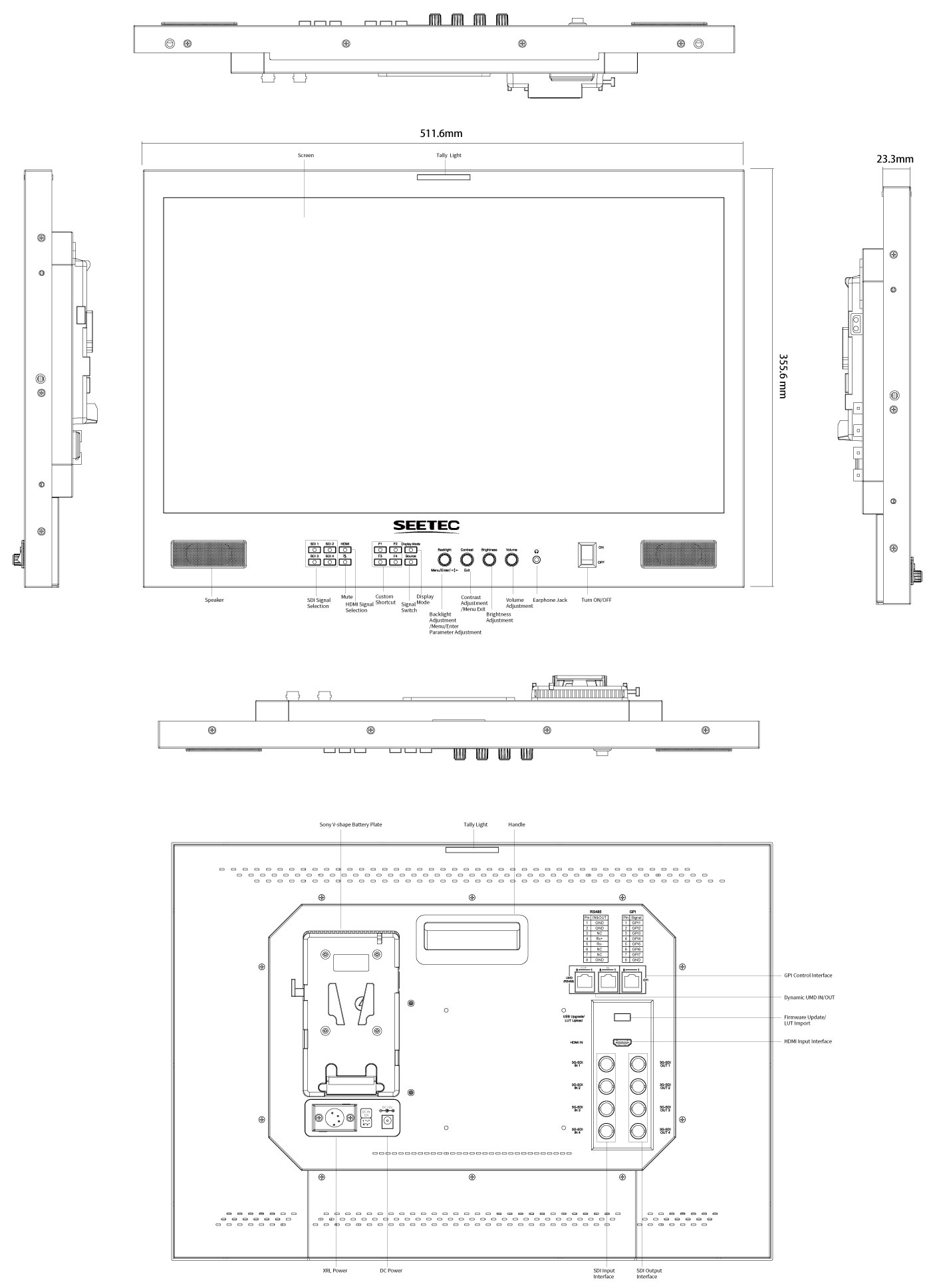 SEETEC ATEM215S-CO is a full HD broadcast carry-on monitor, equipped with 4x3G-SDI inputs and outputs, 1 x HDMI input interface and RS485, GPI control interface. Adopts Rec.709 color standard, display vivid images and professional effects. Rugged and durable aluminium housing; With 3D-LUT, waveform, vectorscope, histogram, peaking focus and other wonderful functions, all of functions can be easily operated and controlled via the front panel buttons. The portable aviation aluminum case can easily handle even harsh location shooting. It is an ideal monitor for film and television crews, broadcast and post-production!