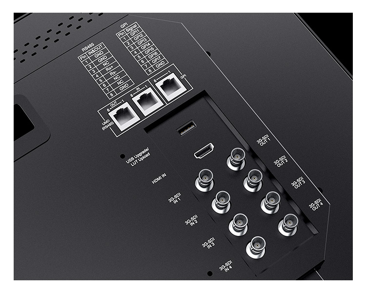 * Multiple interfaces, meet different needs (4*3G-SDI inputs and outputs, 1*HDMI input, RS485, GPI)