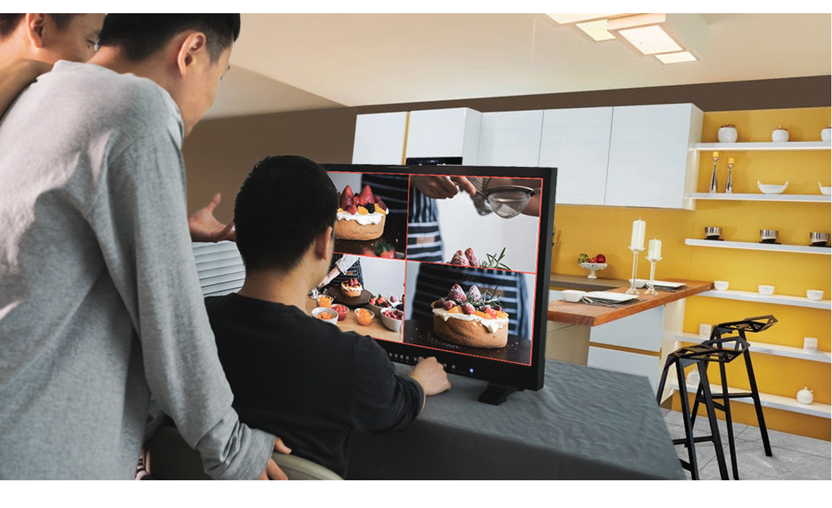 監視器支持四分割、側邊三分割、底部三分割、PBP、PAP多種顯示可選,同一臺設備就可實現多機位監看。